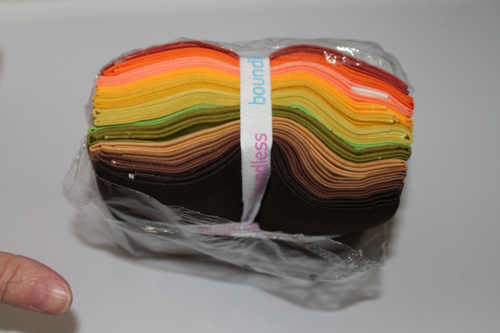 Aura Harvest Sunrise has 12 pieces of orange to yellow to green and brown. What a beautiful combination of colors for a quilt.
