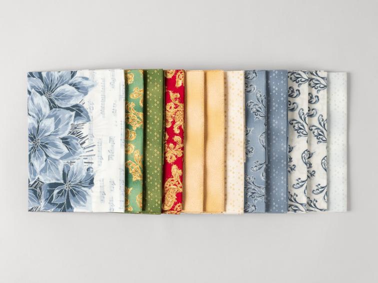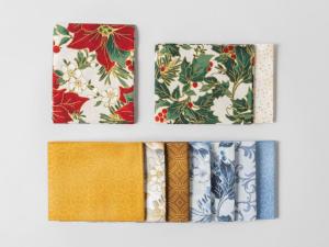 Boundless Christmas Holiday fabric. Get into the holiday spirit with a festive half yard bundle. Rich, classic colors are layered with gold metallic for added touch of luxe sure to make any quilt, table runner, topper stand out. Fabric is 100% cotton,