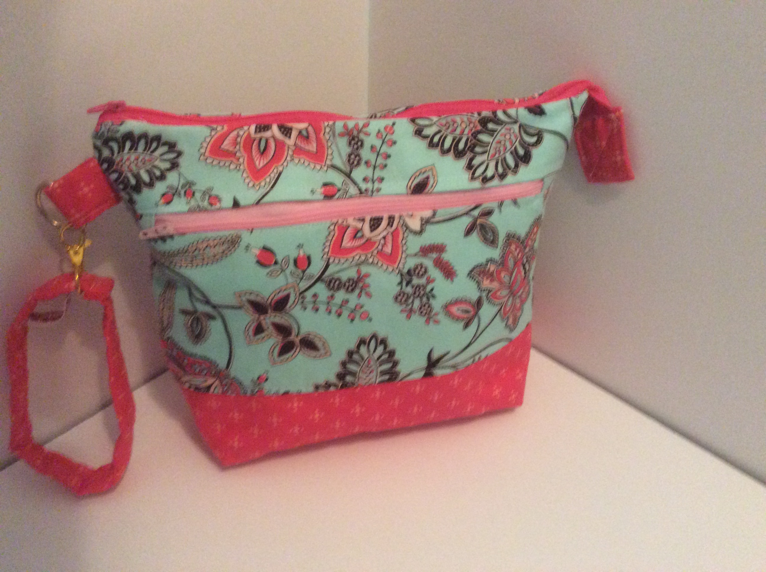 This bag has plenty of room for make-up or personal items Size: is 9 inches by 10 inches. Washable and hang dry. Plenty of room for anything you want to take with you.
