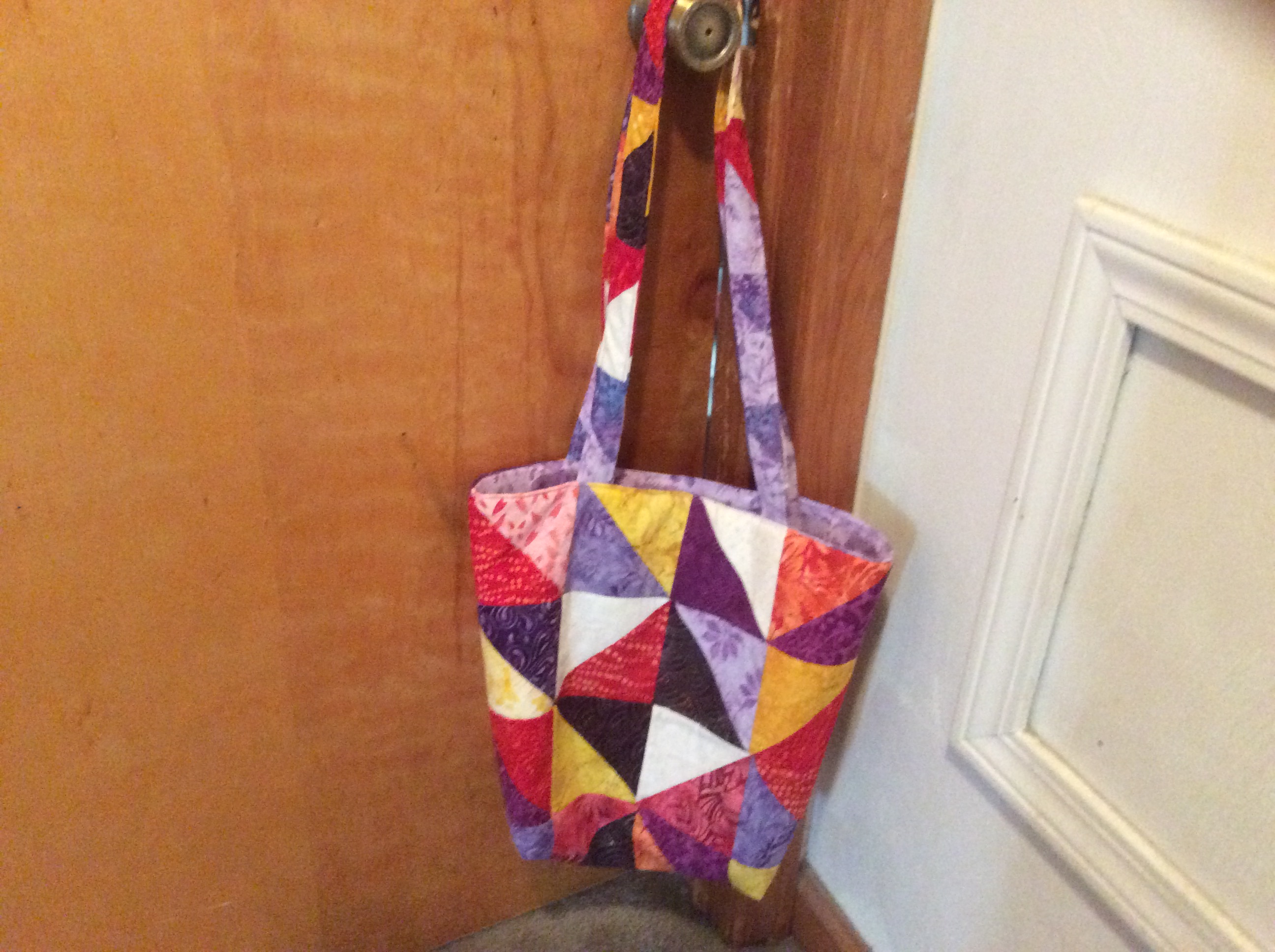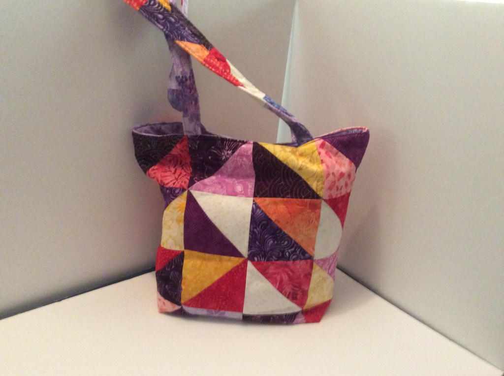 The Rose Pocketbook – This Pocketbook is made with Batik fabrics. The size is 15 Wide by 14 Tall. It a beautiful combination of colors. It also has two inside zipper pockets on the sides. This eye-catching pocketbook is washable and hang dry.